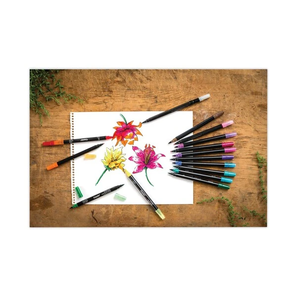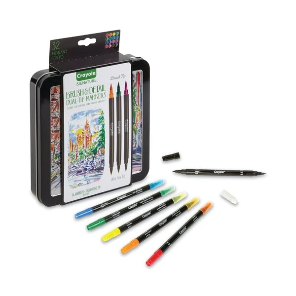Crayola® Brush & Detail Dual Ended Markers, Extra-Fine Brush/Bullet Tip, Assorted Colors, 16/Set