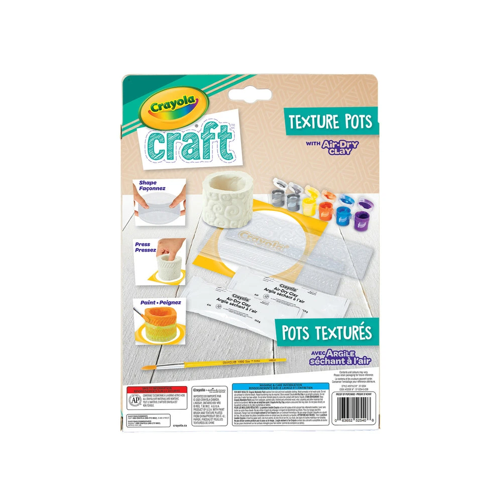 Crayola Craft sets offer kids and parents an all-in-one solution for simple, beautiful craft projects! With the Texture Pots craft kit kids can create two sculpted, no-bake clay works of art without an oven or ceramic kiln, making this craft completely kid-friendly. Once the pots are fully dried, create custom, colourful designs with the included washable paint pots! Makes a fun craft activity for boys and girls. Perfect for kids aged 5 and up.