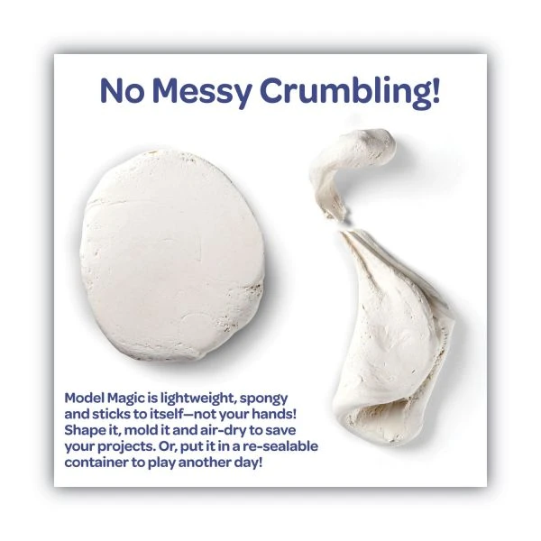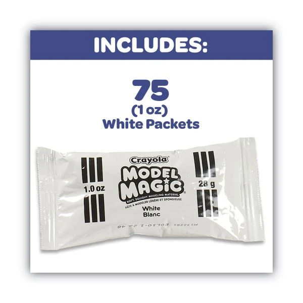 Crayola Model Magic Modeling Compound,1 oz Packs, 75 Packs, White, 6 lbs 13 oz – Model Magic Classpack offers an economical value for the classroom, includes 75 pouches of 1 oz. Crayola Model Magic. Great for quantity control, which means less waste. The Model Magic starts out soft and pliable for easy use and airs dries in 24 hours. Finished pieces can be decorated with markers, acrylic paints, watercolor, glitter glue and tin foil. Free lesson plan booklet included in Classpack. Perfect for the classroom, take home projects and more. Clean handling, safe and nontoxic.