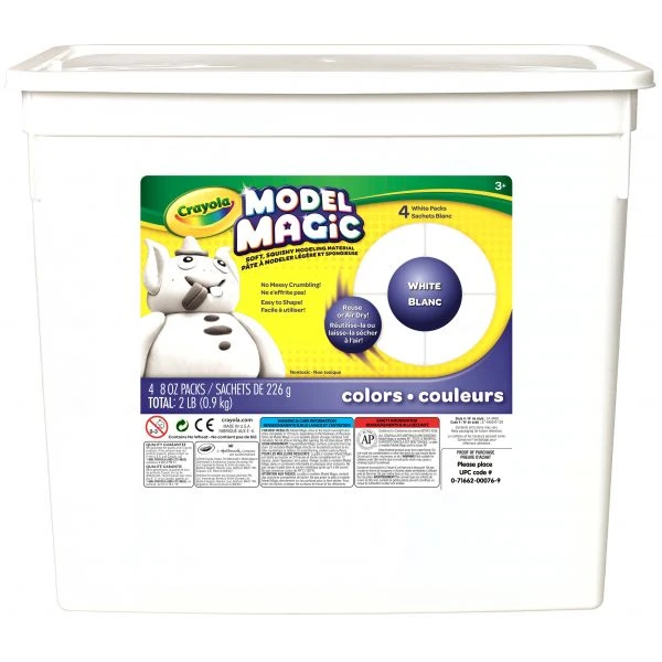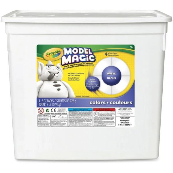 Crayola Model Magic Modeling Compound, 8 oz Packs, 4 Packs, White, 2 lbs – Model Magic Tub contains unique modeling material in all white. Model Magic is an air-dry modeling material that allows kids to create keepable arts and crafts. Model Magic starts out soft and pliable for easy use. Once dry, pieces of Model Magic may be decorated with markers, acrylic paints or watercolors. Tub is reusable and measures 8-1/2 wide x 5-1/2″ deep x 8-1/2″ high. Modeling material is recommended for ages 5 and up.”